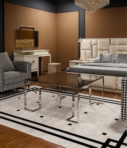 - Цвет мебели и светильников: Серебро
